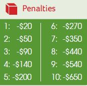 Penalties: Players lose money for each Penalty token they have received during the game, at the rate denoted on their player board.
