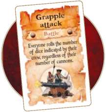 For the rest of this battle, everyone rolls the number of dice indicated by their crew, regardless of their number of cannons. Billy Bones and Long John Silver's parrots supersede the effect of any grapple attack.