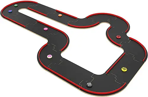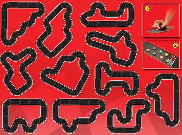 This plays best with 2 or by teams. The players place themselves at opposite sides of the circuit. 8 track sections must separate them. To win you must pass your opponent.