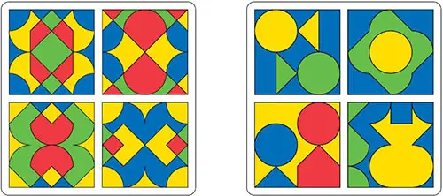 Players are allowed 10 seconds to memorize the pattern shown. Turn the card over, and complete the pattern from memory with the help of the hints you'll find on the back of the card.