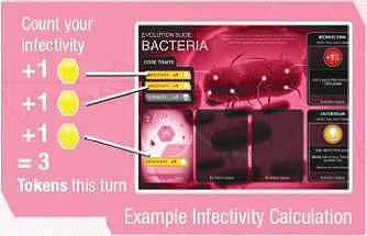 Your Infectivity Traits on your Evolution Slide control how many Tokens you must put down each turn. For example, if you have 3 Infectivity Traits, then you must put down 3 Tokens (if possible).