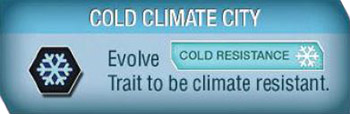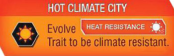 You may only place Tokens on a City if you can resist its climate. You are always Climate Resistant to Neutral Climate Cities but to be Climate Resistant in a Hot/Cold City, you must have evolved the Heat/Cold Resistance Trait on your Evolution Slide.