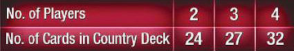 For a longer/shorter game. Change the length of the game by adjusting how many Country Cards are in the Country Deck. Remove 1 card per player for a shorter game or add 1 -2 cards per player for a longer game.