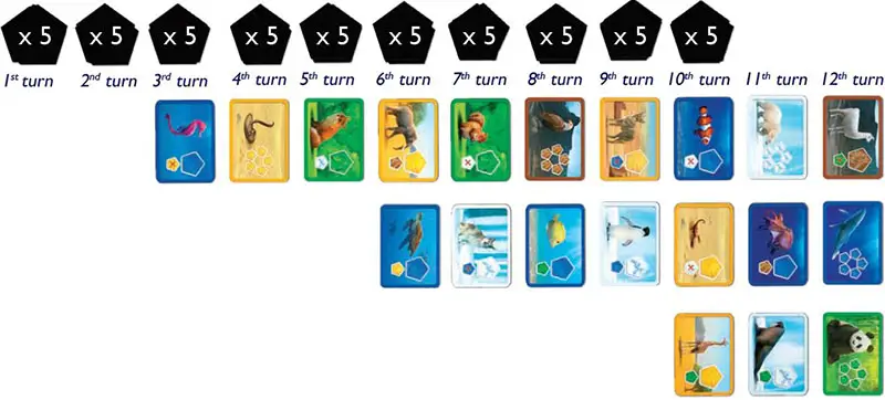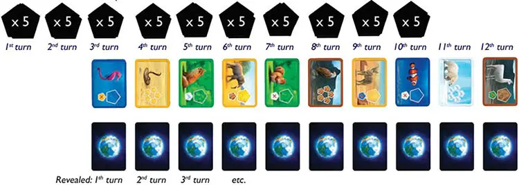After each turn, the next mystery Animal card is revealed. This allows players to discover mystery Animals 3 turns ahead.