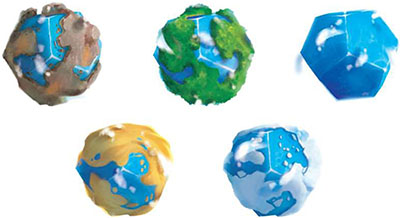 Throughout the 12 turns that make up the game, strategically position your continent tiles on your Planet's core to form hospitable environments for animal life to flourish.