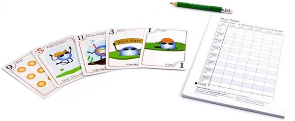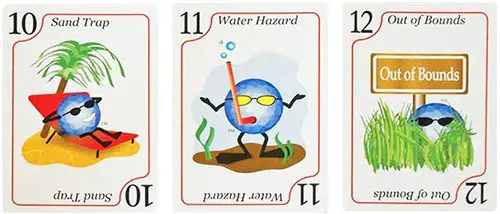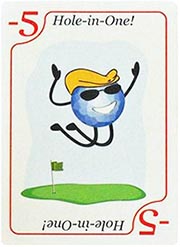 Count strokes according to the face value of each card. (The negative value of the Hole-in-One card removes strokes from the score).