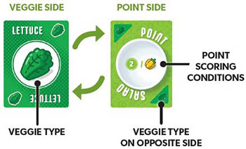 Optional free action: Once per turn, you may choose to flip over any one of your point cards (either drafted this turn, or on a previous turn) and turn it into a veggie card (but you cannot flip a veggie card into a point card).
