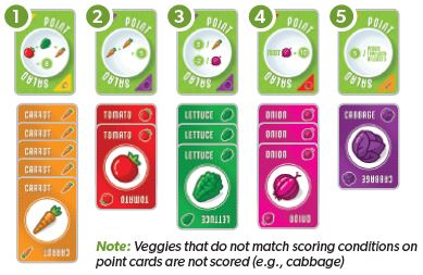 for each point card, meaning that each veggie card is used to score each point card. Players may score a point card multiple times, and they may also use the same veggie card to score multiple point cards.