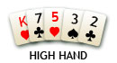 ![]() | Highest CardThis is any hand which doesn't qualify as any one of the above hands. If multiple people tie for the highest card, they look at the second highest, then the third highest etc. High card is also used to break ties when the high hands both have the same type of hand (pair, flush, straight, etc). |