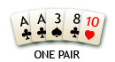 ![]() | One pairOne pair with three distinct cards. The highest pair wins and the high card breaks ties. |