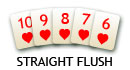 ![]() | Straight FlushA straight flush is the best natural hand. A straight flush is a straight (5 cards in order) that are all of the same suit. An ace may either be high low (5-4-3-2-1) but a straight may not 'wraparound' such as e.g. K-A-2-3-4. |
