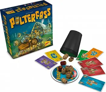 If no barrels of the current roll stand upright, the innkeeper has failed. He has to finish serving. Now phase 5, "The bill", follows immediately, in which the innkeeper will now go away empty-handed.