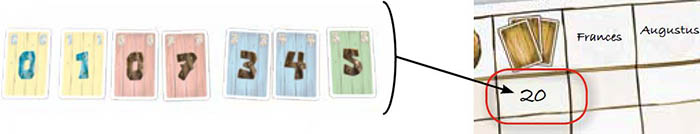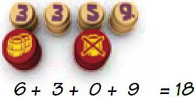 If the innkeeper has turned off the tap (and thus forgoes further rolling), the scoring is done as follows: The numbers on all played cards are added up.
