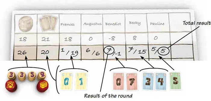 In order to keep a tally of the score, players note these mug numbers on the notepad. There, you should always note down the result of the current round and the total of all rounds for each player.