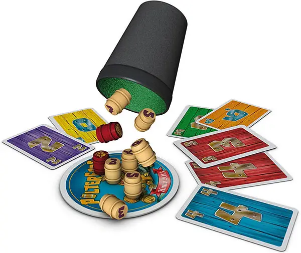 The innkeeper rolls all barrels onto his coaster and shows the result to all players. If no number barrel winds up standing, he keeps rolling until at least one number barrel ends up standing.