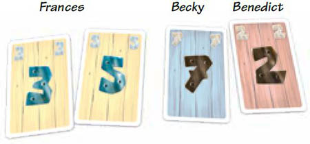 This player now becomes the innkeeper for the next round. Each guest takes back all his own game cards and holds them hidden from the others.