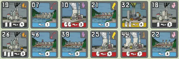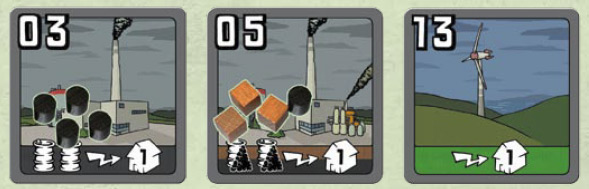 During the game each player can have only 3 power plants at any time. When a player buys a fourth plant, he must discard one of his other power plants.