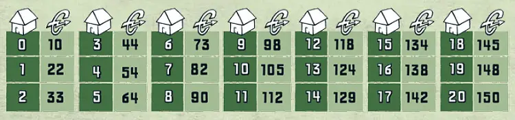 The player pays the building cost of 10 for the starting city. Depending on what step the game is in, the number of players who can have houses in a city and the cost to build in a city changes (see Steps of the game below).