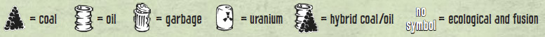 Ecological and Fusion Power Plants: These power plants do not require any resources. They can supply up to the number of cities shown in the house symbol.