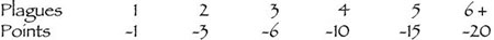 After each epoch, each player loses points in fame dependent on the number of plague tiles in his display area:
