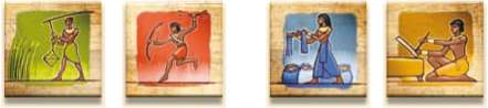 Furthermore, each player who has at least one tile of all four different types of people receives 2 ankhs. Players who have at least one tile of three different types of people receive 1 ankh. After scoring, all people tiles are returned to the box.