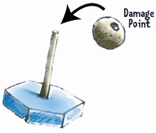 Amoebas that have 2 or more Damage Points die a natural *Death. If an amoeba dies, it is removed from the board, and replaced by two Foodstuff cubes of each of the four (or three) colors in play.