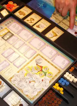 As his last duty, the captain unloads all full ships by placing those goods back in their separate supply piles. Partially full and empty ships remain as they are until the next captain phase. It will be more difficult to load goods in the next captain phase, because of the kinds of goods already on the cargo ships and the fewer number of spaces available.