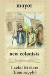 The player who chooses this role may first take one colonist from the colonist supply (not fromthe colonist ship!) as his privilege. Next, the players take the colonists from the colonist ship one at a time, starting with the mayor. The players continue to take one colonist at a time, in clockwise order, until none remain on the colonist ship.