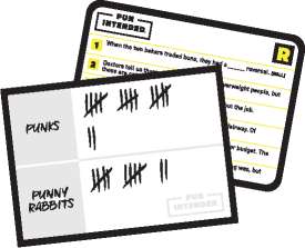 At the end of each round, total up the number of puns that were answered correctly or stolen and mark each team's score on the scorepad (see scoring).