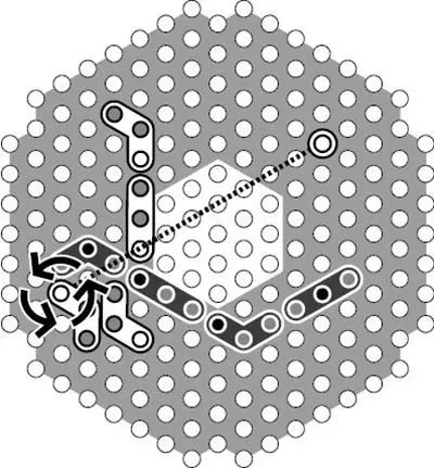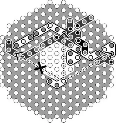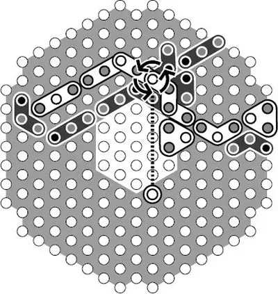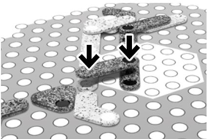 A dot that is covered by another piece's dot is blocked. This is also valid for a dot that is bridged (i.e. the dot right under the middle of the bridge). The piece of which it is part may not be moved, even if it would be possible to pick it up without disturbing the position of other pieces.