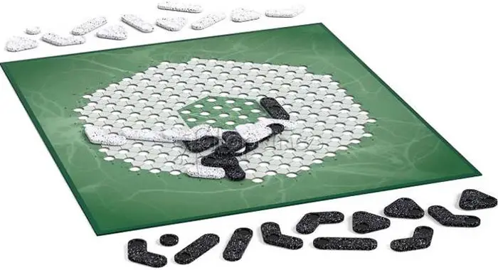 Place the board between the players so that its long side (with the lines marked with letters) runs from one player to the other.