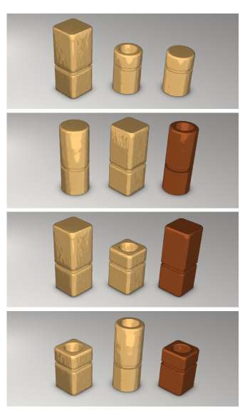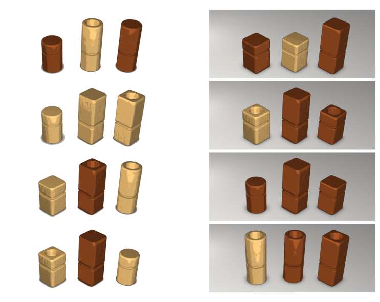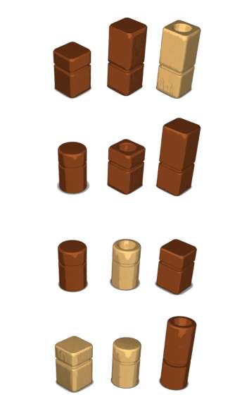 A Quarto is a group of 4 pieces sharing at least one common characteristic : the color (light or dark), the shape (square or round), the size (small or tall), or the filling (full or hollow).