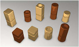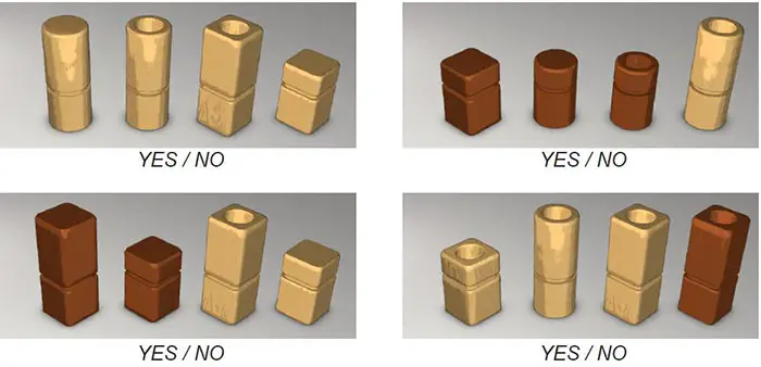 Observe: teacher begins by asking a pupil to identify a piece by using one or more criterion. For example: « give me the tall, light, square and hollow piece ». In this exercise, the teacher names the criterion of the pieces, in order to get the pupils accustomed to them.