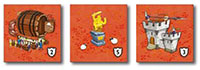 The town territories in this kingdom contain several different types of buildings, and they all score differently according to the symbols in the lower right corner of the tiles.