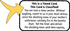 You are on stage! SHOWBIZ cards will have you sing, dance,act,do impressions ,mime,write poetry,and anything else we find entertaining.Note:If mimes scare you,Quelf may not be the game for you.