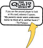 Quelf Effect: Every card has a Quelf Effect. Sometimes it's an explanation of how the card works, sometimes it's a bonus question or additional effect of the card,and sometimes it's just a silly quote from one of the characters from the world of Quelf