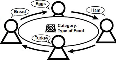 Continue around the circle until a player is unable to give an answer within 5 seconds.