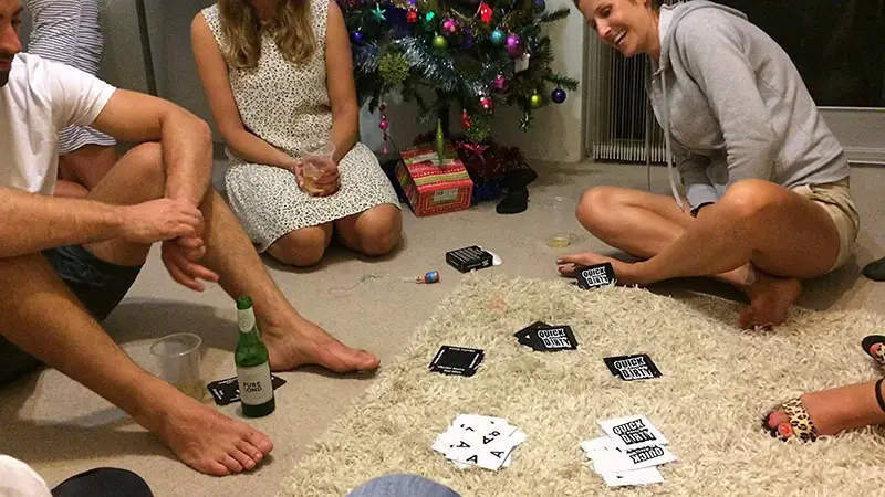 - If nobody yells an acceptable answer within 5 seconds everybody takes one drink