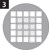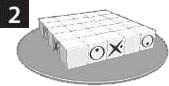 At the beginning of the game, the cubes all have a blank top face (fig. 2). The two players or teams choose who plays with crosses, who plays with circles, and who is to start.