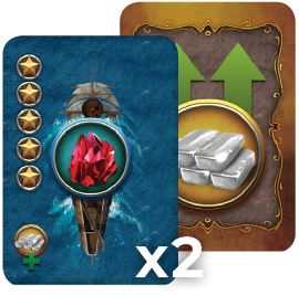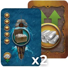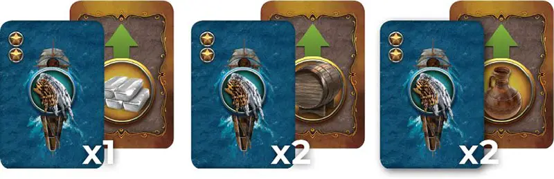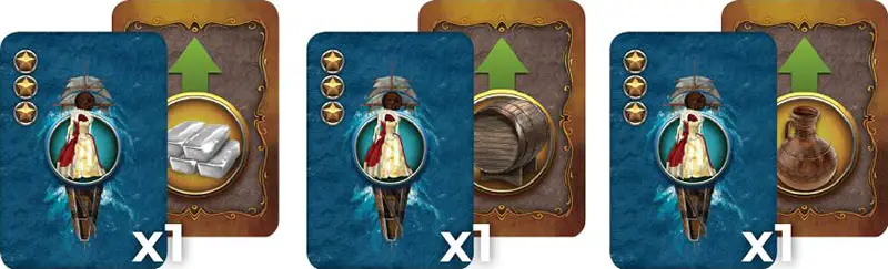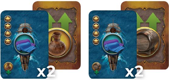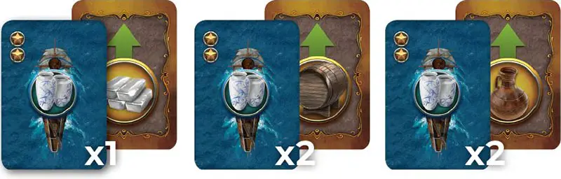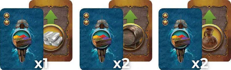 Each good is worth a different number of points (indicated by the number of stars on the left of the card). Anytime an icon has a blue background, this indicates that it is a good gained from a ship.