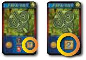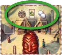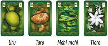 Example: Arno chooses the "Marae" location. He adds one Mahi-mahi and one Taro to the Commodities Market and advances his Tattoo Marker by 2 spaces (1 for the sacrifice, plus 1 for his Kahuna bonus).