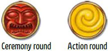 After the first Ceremony Round, reveal the To'o Missions on the second statue. After the second Ceremony Round, reveal the Missions on the third statue. In either case, advance the Game Round Marker by 1 space.