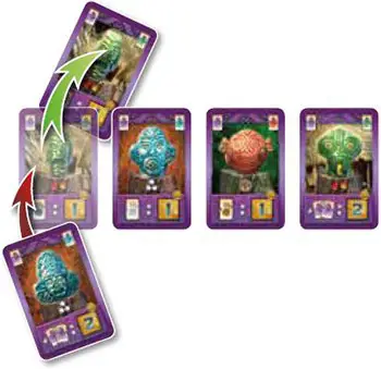 All Masks exist in pairs. If a player manages to collect both Cards of the same pair (i.e., two Cards sharing the same image), that player will gain additional VP.
