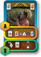 AWhen visiting the Marae, the Kahuna rolls the die before any actions are resolved. All players owning a number of Shamans equal to or greater than the result of the die roll may advance their Tattoo Markers by 1 space.BPlayers may activate one or more of their Shamans during their own turns (action round and/ or ceremony round) to perform Rituals they own (one Ritual per Shaman). The Mana costs of each of these Rituals must be equal to or less than the number of Priests a player has recruited. -