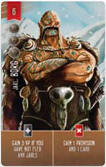For example, the current player has encountered Jarl Borg and have decided to Subdue him. They take 5 Wounds, pay 3 Silver and add him to their crew. If Jarl Borg is still in their crew at the game's end, they will score 3 VP if they have not fled any Jarls.