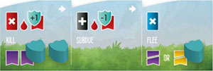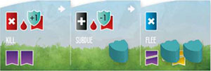 Sometimes it's easier to just run away. So long as you can accept the shame and mocking that is sure to follow. When choosing to Flee an enemy Jarl, the current player discards the Jarl Card without taking any Wounds. They must then choose to lose either 1 Fame or 1 Victory Point. If they have neither, nothing happens.