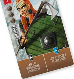 Some raids may also include 1 or more Valkyrie with the Plunder. Although taking Valkyrie result in the death of hired Crew Members, they also offer another way of scoring Victory Points. When taking Valkyrie, players should follow these steps: