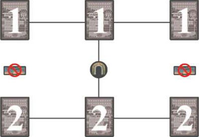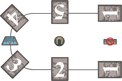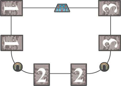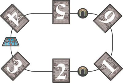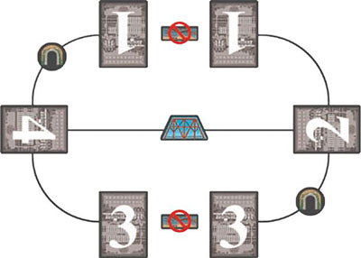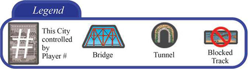 At the start of the game, select one of the following configurations, or even design one of your own! Position the City boards, the Bridge, Tunnels and Blocked Track markers as shown.