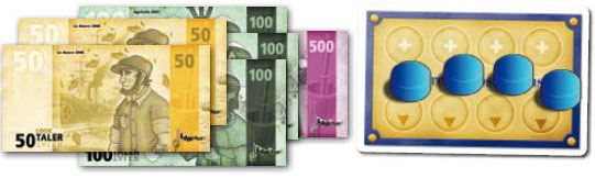 Place the Stock certificates next to the Share Value track. These are considered to be owned by the bank at game start.