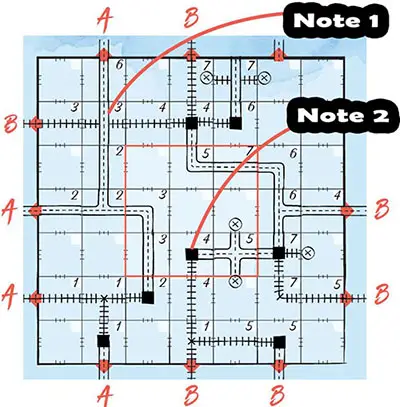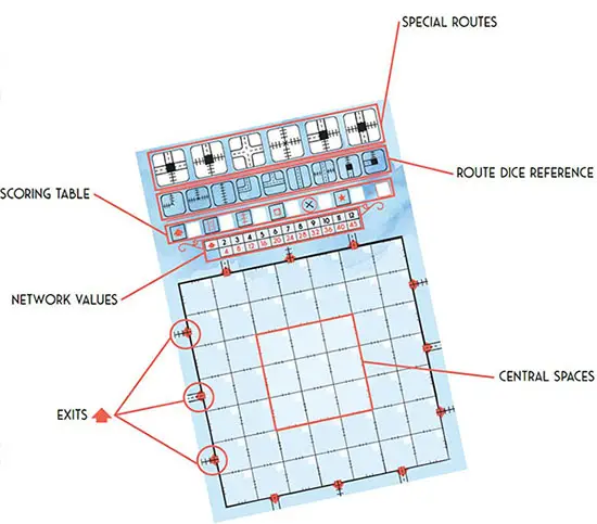 Hint: To more easily keep track of the Routes you have to draw, you can use the dice reference on your board to mark the available Routes, if you so desire.